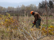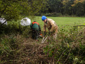 Am trüben Samstagmorgen im Oktober ist das Laute Aufheulen von Motorsägen am Waldrand von Hohenrode zu hören. Die Ehrenamtlichen des NABU Rinteln haben im Herbst zur Pflegemaßnahme eingeladen, um die unterschiedlichen Heckenpflanzen und Bäume, die die Streuobstwiese umsäumen, zu schneiden.