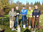 An einem sonnigen Freitagvormittag im Januar trafen sich die ehrenamtlich Aktiven von Imkerverein, NABU und Obst- und Gartenbauverein zum gemeinschaftlichen Pflanzen auf der Projektfläche des Insektenschaugartens „Melissa“ unweit des Rintelner Generationenparks.