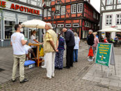 Am Samstagvormittag hatte sich das Rintelner Aktionsbündnis Artenvielfalt auf dem Marktplatz zusammengefunden, um Unterschriften das Volksbegehren „Artenvielfalt.Jetzt!“ zu sammeln. Mit Plakaten und Beachflag machten die Akteure auf Ihre Aktion aufmerksam, am Infostand informierten sie Interessierte über das Volksbegehren.