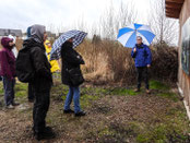 Nass und grau ist es an diesem Sonntagvormittag, als sich die ehrenamtlichen Naturschützer zusammen mit zehn interessierten Besucherinnen und Besuchern in der Dieter-Eggersmann-Beobachtungshütte versammeln.