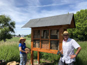 Schlusssteine im wahrsten Sinne des Wortes konnten nun im kooperativen Projekt „Melissa“, dem derzeit entstehenden Insektenschaugarten gesetzt werden: Die große Insektennisthilfe in massiver Ständerbauweise wurde von den NABU-Aktiven Anke Schurtzmann und Dieter Aßbrock befüllt.